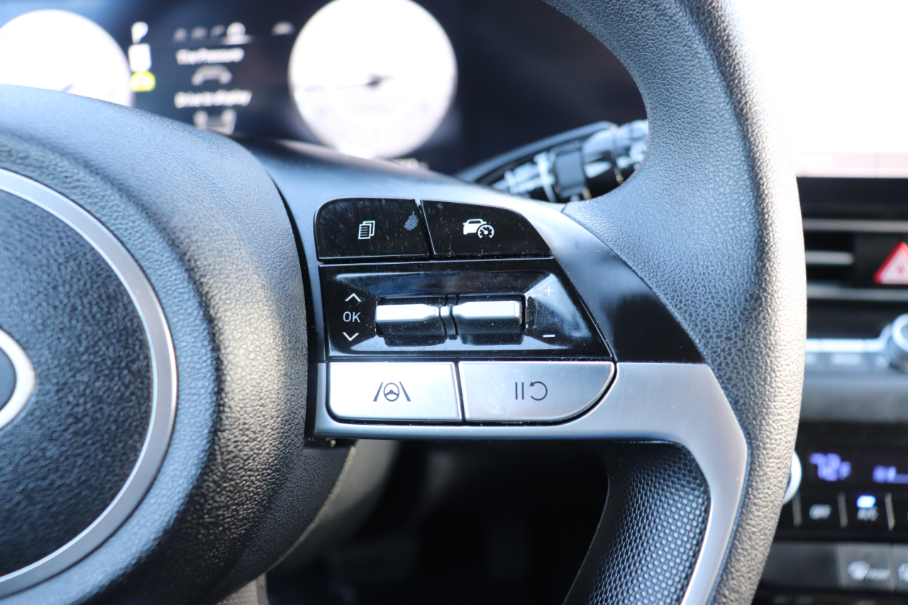 Safety is a top priority in this Elantra, with features like Lane Following Assist, Blind Spot Collision Warning, Forward Collision-Avoidance Assist, Rear Cross-Traffic Collision-Avoidance Assist, and a back-up camera ensuring you have peace of mind on the road. The tire pressure monitoring system, airbags, and rear child safety locks further enhance the safety of this vehicle.